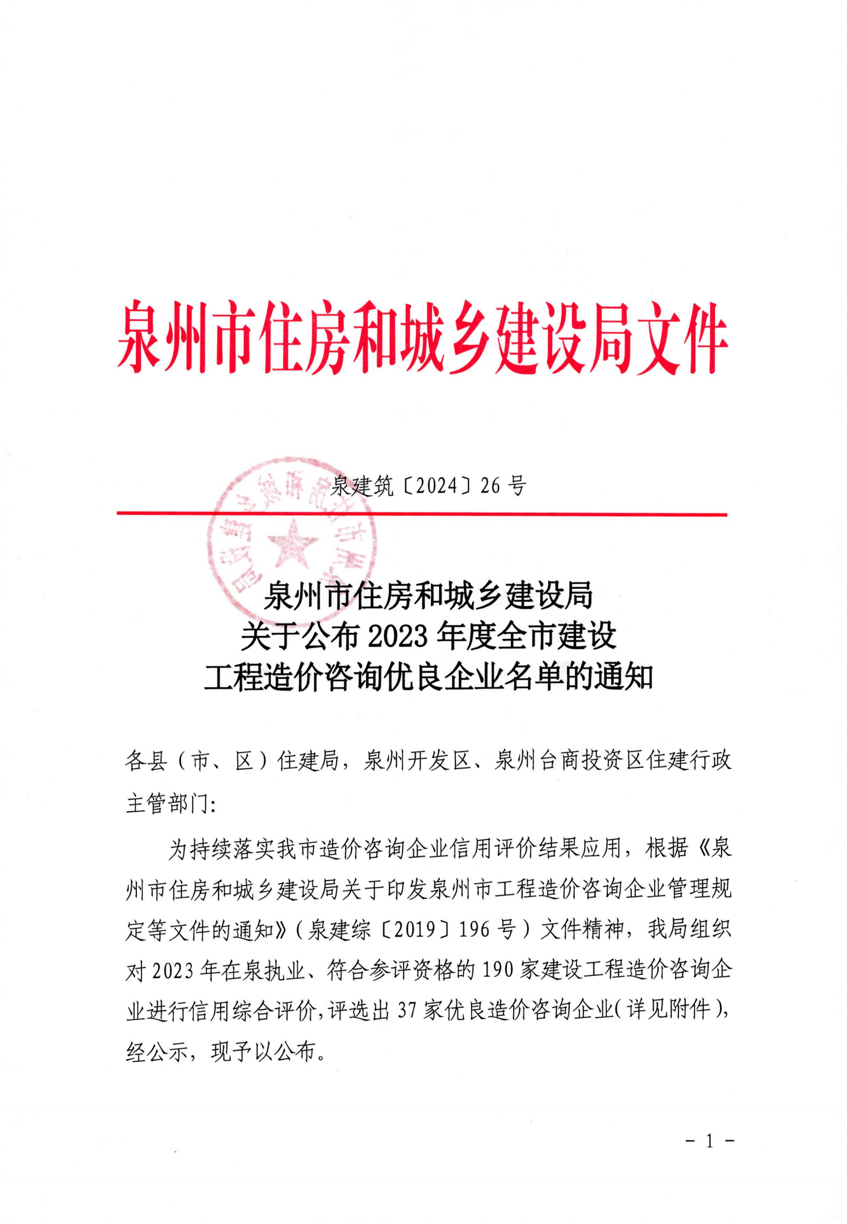 在2023 年度全市建設工程造價咨詢領域的激烈角逐中,喜訊傳來!泉州市住房和城鄉建設局公布的 2023 年度全市建設工程造價咨詢優良企業評選結果揭曉。中宏源建設管理有限公司脫穎而出,成功榮獲“2023 年度建設工程造價咨詢優良企業”稱號。